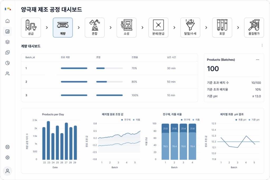 코스모신소재의 이차전지 양극재 공정에서 배터리 소재의 품질을 결정짓는 미세한 온도와 압력을 실시간으로 최적화하여, 버려지는 원료를 줄이고 생산 수율을 극대화했습니다. 생산 편차를 줄이고 공정 효율을 극대화합니다.